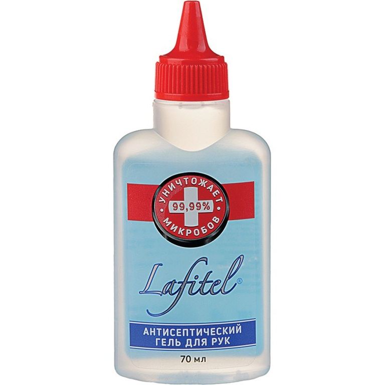 Способ применения: Несколько капель антисептического геля Лафитель нанести на руки и помассировать их до полно впитывания.