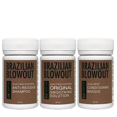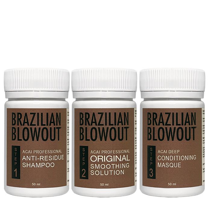 Пробный набор Brazilian Blowout 50/50/50 мл. - мощный комплект, который покончит с пушащимися непослушными тонкими и ломкими волосами, сделав их наполненными жизненной силой, блеском и легкими в уходе. Вы можете выбрать, оставить ли вам природные кудри или выпрямить их. Состав работает в обоих направлениях.