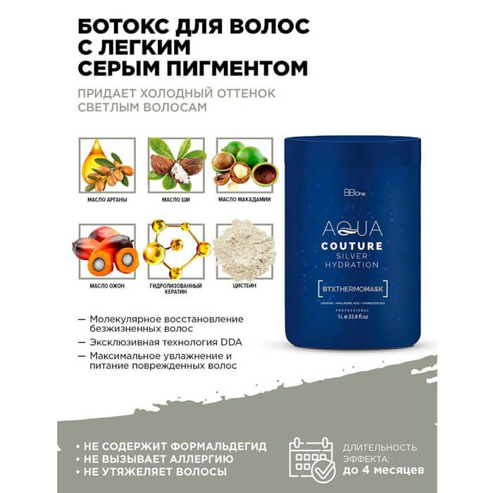Горячий ботокс с серым пигментом для восстановления всех типов волос.