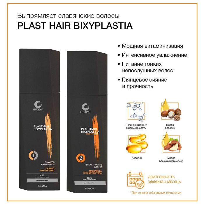 Биксипластия для волос H-Tokyo позволяет сократить время процедуры и лишена едких химических испарений. Волосы будут не только роскошно выглядеть, но и отдавать легким цитрусовым ароматом, а на ощупь приятно гладкие, как шелк.